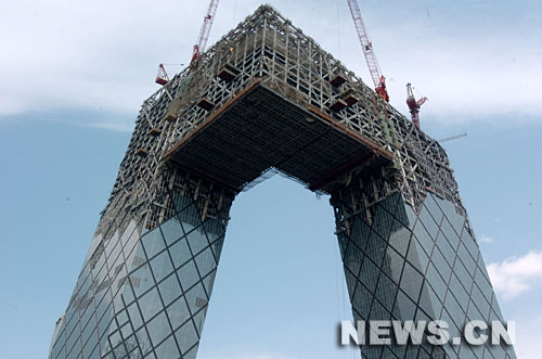 位于人民大會堂旁邊的國家大劇院可謂一件驚世駭俗的新建筑作品,其設計者是參加過世界四分之一大型國際機場設計的保羅.安德魯。國家大劇院在建筑方面體現了國際一流的水準,進行了許多大膽的嘗試。如采用主要用于制造飛機等航空器的金屬材料——鈦金屬板作為建筑屋面材料;大膽的橢圓形外觀和四周的水面構成了一個水上明珠的建筑造型,新穎、前衛,構思獨特,整體上體現了21世紀世界標志性建筑的特點,堪稱傳統與現代、浪漫與現實的完美結合。作為國際一流的藝術殿堂,國家大劇院內三個劇場的內部裝飾和舞臺機械、燈光音響方面將采用世界一流水準的專業設備,在這里觀眾將夠得到與世界同步的真正一流的藝術享受。 空中巨環:TV大樓——中國中央電視臺(CCTV)