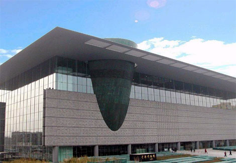 ![]() 首都博物館是中國傳統文化與現代工藝充分結合的產物。博物館建筑用地2048萬平方米,總建筑面積6萬余平方米,建筑高度40米。就建筑的外觀而言,傾斜的青銅體破墻而出,衍生出文物發掘的意象;懸挑的大屋頂式框架應和中國傳統的出檐;懸掛式框架磚墻模糊了古代城墻與現代幕墻的界限;青銅厚重的肌理散發著濃郁的歷史氣息,木質與磚石的大量運用更彰顯一種歷史的久遠。在35米高、1800平方米寬闊的公共大廳正中央赫然矗立著高大的景德街樓牌——一座曾被我國建筑大師梁思成譽為北京最為壯美的牌樓,曾經立于阜成門內大街歷代帝王廟前的兩個牌樓之一。東側展廳由大面積青銅幕墻裝飾的一段橢圓斜筒向外傾斜著,從方方正正的建筑中破墻而出;西側大廳是個像大木盒子的五層方形木墻展廳,建筑之間的空隙中,設計疏密有致地布置了竹林庭院、潺潺流水,自然與人文、傳統與現代在這里交匯融合。 “人民的宮殿”北京新國際機場