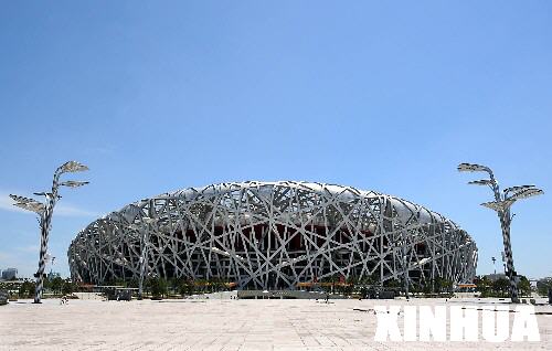 距離2008年奧運會開幕還有一個月時間,北京市正在對各個奧運會比賽場館的周邊環境進行最后的整治和美化。這是7月6日拍攝的國家體育場(“鳥巢”)前的廣場。 新華社記者王頌攝