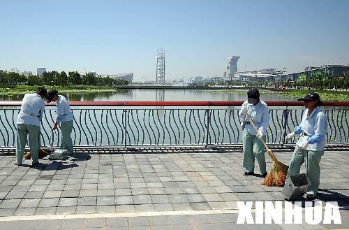 距離2008年奧運會開幕還有一個月時間,北京市正在對各個奧運會比賽場館的周邊環境進行最后的整治和美化。 新華社記者王頌攝