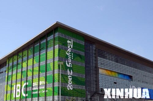 國際廣播中心“穿”了新“外衣”(7月6日攝)。距離2008年奧運會開幕還有一個月時間,北京市正在對各個奧運會比賽場館的周邊環境進行最后的整治和美化。 新華社記者王頌攝