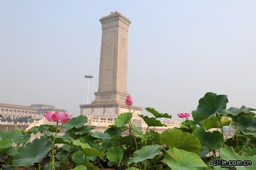 7月7日拍攝的北京天安門廣場上盛開的紅蓮。新華社發(fā)(楊帆 攝)