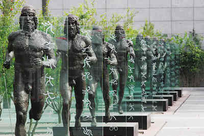 2008年7月13日,北京奧林匹克中心區下沉花園最北端的“古希臘運動雕塑群”。建成后的奧林匹克公園下沉花園將展現7個中國特色的院落。