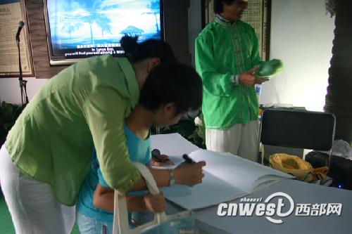 一位媽媽教女兒在留言簿上寫:“我想去海南撿貝殼”。