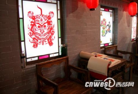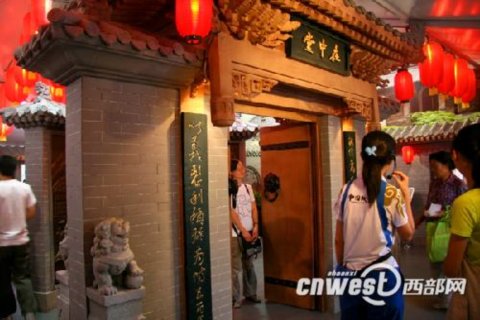 這是山西展廳一進門的樣子,一座大宅院的大門,主打的就是他們的王家大院。旁邊專門有工作人員解說。