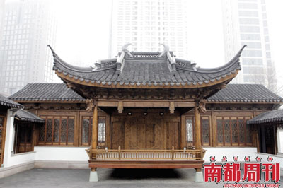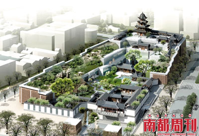 相比最初的效果圖,建成后的楝亭形態(tài)及假山石的走向都發(fā)生了變化。(建筑效果圖由江寧織造府博物館提供) “大觀園”復(fù)活記 元旦伊始,繁華的南京市玄武區(qū)長(zhǎng)江路上,一片圍擋了3年的廣告牌轟然倒地。江寧織造府博物館,宛若一個(gè)古代“盆景”,置身于現(xiàn)世的都市高樓之中。 耗資7億,占地約1.87萬(wàn)平方米,這座由兩院院士吳良鏞設(shè)計(jì)的園林,剛露面就備受猜測(cè)與爭(zhēng)議,如大觀園里那些紛紛攘攘。 康熙五十年(一說(shuō)五十四年,一說(shuō)雍正二年),即公元1711年,曹雪芹誕生在江寧織造府(署)內(nèi),并以這里為藍(lán)本寫出了文學(xué)名著《紅樓夢(mèng)》。作為清代專門制造御用和官用綢匹的官辦織局,江寧織造府歷史比《紅樓夢(mèng)》更為悠久。始建于清初順治二年的江寧織造府,存在了262年,在太平天國(guó)時(shí)期被燒毀,關(guān)于這座府邸昔日的繁華勝景,后人們只能從《紅樓夢(mèng)》的描述中追憶和想象。 歷史在1984年有了新契機(jī)。那一年,南京市大行宮小學(xué)施工工地上,發(fā)現(xiàn)了太湖石和一些絲織染料,從而確定了江寧織造府的遺址,重建于是有了歷史依據(jù)。 但由于巨大的建資,項(xiàng)目直到2002年才有民間財(cái)團(tuán)愿意接手,而真正重建則在2006年之后。 從夢(mèng)想到現(xiàn)實(shí),江寧織造府博物館走過(guò)了恩怨辛酸的25年,其間,有癡迷沉醉,有利益糾葛,有學(xué)術(shù)的爭(zhēng)鳴,有資本與文化的碰撞,有官商學(xué)三方博弈,有天時(shí)地利之便。這座民營(yíng)博物館之興起,如一部大書(shū),一寫25年,其一磚一瓦,一圖一稿,映見(jiàn)種種世相,“都云作者癡,誰(shuí)解其中味?” 內(nèi)文導(dǎo)讀: 紅學(xué)家的金陵春夢(mèng) 官商學(xué)三方之爭(zhēng)