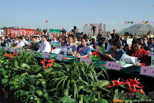 住建部部長(zhǎng)姜偉新、副部長(zhǎng)仇保興、北京市副市長(zhǎng)夏占義,濟(jì)南空軍、軍區(qū)首長(zhǎng),佛得角駐華大使儒利奧.德莫賴斯先生,以及英國、俄國、德國、法國、加拿大、日本、韓國等21個(gè)國外城市的嘉賓;山東省省委書記姜異康,省委副書記、省長(zhǎng)姜大明,濟(jì)南市委書記焉榮竹等山東省內(nèi)和濟(jì)南市的領(lǐng)導(dǎo)參加了開幕式。出席開幕式的人員還有住建部及有關(guān)司領(lǐng)導(dǎo)同志,中國風(fēng)景園林學(xué)會(huì)、中國公園協(xié)會(huì)等部分行業(yè)協(xié)會(huì)負(fù)責(zé)人;各省(市、自治區(qū))住建廳(局)、各參展城市的領(lǐng)導(dǎo);港澳臺(tái)代表,山東省領(lǐng)導(dǎo)同志,省住建廳負(fù)責(zé)人;濟(jì)南市領(lǐng)導(dǎo)同志,市直各部門主要負(fù)責(zé)人,各縣(市)區(qū)黨委、政府主要負(fù)責(zé)人;建設(shè)者代表、新聞單位記者等約2000人以上。