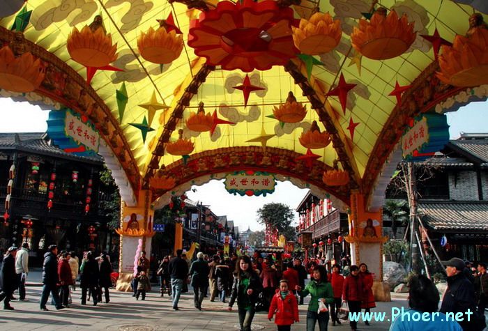 春節大假將結束,而在武侯祠博物館舉辦的成都大廟會依然人潮洶涌。據了解,盡管降溫、降雨為游客出行帶來不便,但成都大廟會仍然人氣旺盛,大年初一接待游客達到15.28萬人次,創下歷年大廟會單日人次新高!據不完全統計,春節黃金周七天,大廟會接待游客約65萬人次,而去年為57萬人次,中央電視臺等多家全國性媒體對成都大廟會作了專題報道。 大年初一的成都大廟會,可以用人山人海來形容。從早上到晚上,人流量幾乎未有任何消減,各個入口都是排隊逛廟會的市民,而主干道、主舞臺及武侯祠內都是密布的游客。喜慶的鑼鼓、驚險刺激的表演讓人們興奮不已,而猜燈謎、品小吃等“互動節目”則給人們帶來了無限樂趣。摸“福”摸“喜”,更是成為成都市民新年第一天祝愿幸福生活的必備活動。 作為大廟會最重要內容之一的燈會,則以精心設計的15組大型主題燈組,融合了三國文化、虎年特色,并在造型設計上進行了大膽創新,給人耳目一新的驚喜。 據了解,通過連續數年的持續打造,扎根武侯祠的成都大廟會,短短6年時間,已在全國數以萬計的各種廟會中嶄露頭角,成為與北京地壇、南京夫子廟、上海豫園等全國著名廟會齊名的中國傳統廟會品牌之一。逛成都大廟會,觀演出、賞展覽、品小吃,已成為成都市民及游客在春節期間最傳統也是最時尚的習俗。