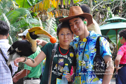 虎年春節黃金周 呀諾達七天迎客5萬人次 ![]() 呀諾達春節七天迎客5萬人次,一對情侶與鳥兒合影