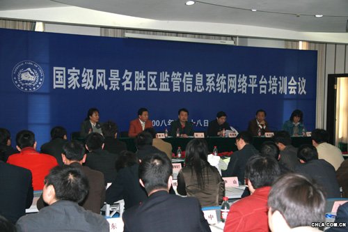 國家建設部為加快推進風景區網絡平臺的功能應用,促進風景名勝區之間工作交流,于3月18日至19日在河南云臺山召開的國家級風景名勝區監管信息系統網絡平臺培訓會議。會議共有建設部、14家省級建設部門和29家國家級風景名勝區等單位的97名領導與代表參加,圍繞“如何更好地讓監管信息系統為景區資源合理開發、保護和決策服務”這一主題展開研討。黃山風景區派代表出席會議。 國家建設部、河南省建設廳領導及河南云臺山景區管理局分別在開幕式上致辭。建設部風景名勝區監管項目組在會上作了《數字化景區試點建設工作報告》,并詳細介紹了監管信息系統網絡平臺的內容、功能及后臺管理,數字化建設的資深專家彭飛、聶大同分別做了專題講座。會后,與會代表參觀了云臺山數字化控制中心,考察了云臺山的數字化建設情況。培訓會議上,參會的領導與專家多次對黃山風景區信息監管系統建設的經驗給予高度的評價。