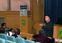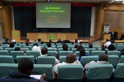 “森林資源可持續經營管理官員研修班”系列報道6: 4月28日下午,在“08年森林資源可持續經營管理官員研修班”課程學習中,北京林業大學李俊清教授就“生物多樣性保護”做了專題講座。 李俊清教授開篇為各國林業官員介紹了“什么是生物多樣性”,指出物種的多樣性主要在于物種的豐富度和均勻度。李教授用大量的事例分析了物種多樣性指數以及物種多樣性的規律。 ![]() 李教授重點介紹了生物多樣性保護的理論基礎,包括島嶼生物學理論、集合種群理論等。李俊清強調由于生物棲息地喪失、環境質量惡化以及資源過度開發和外來物種的入侵造成的物種消失速率是自然滅絕的1000倍,為此保護生物的多樣性任務艱巨而又迫切。同時,李教授指出生物多樣性的保護不是單純的物種保護,更要從基因、物種、生態系統、景觀四個層次上全方位開展保護活動。 李教授還以我國自然保護區建設為背景為在座的林業官員介紹了保護區設計原則,并展示了相關的圖片。講座結束后李教授還與各國官員進行了講座內容的交流,并希望大家能加強交流,更好地開展生物多樣性保護。 ![]()