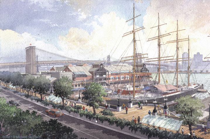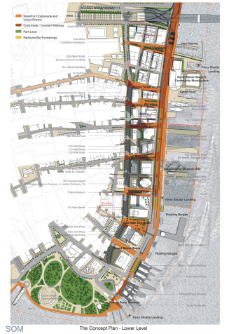 東江濱水項(xiàng)目旨在重新獲得獨(dú)特的海岸線的潛力。主管長官希望在濱水地區(qū)和其他市區(qū)之間重新開放一個(gè)“城市門戶”,并且提供一個(gè)線性地帶從而符合曼哈頓下城建筑和設(shè)計(jì)這樣的實(shí)力和尺度。