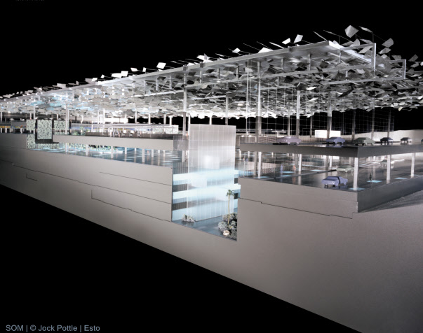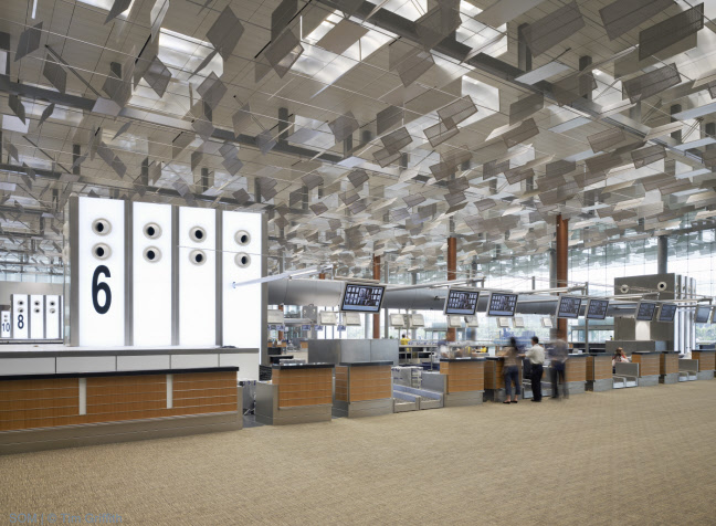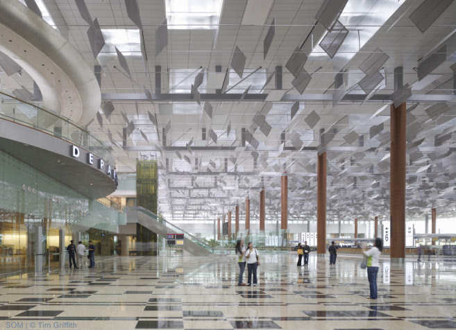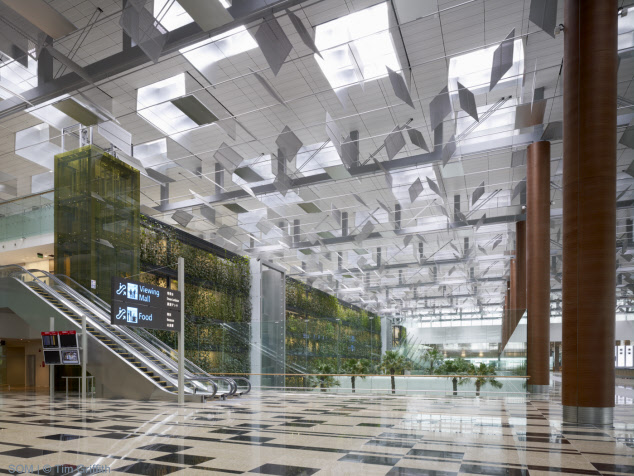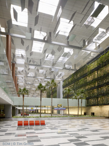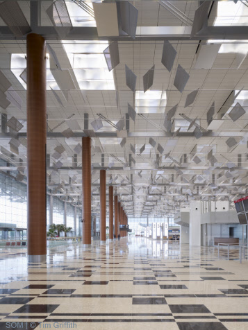樟宜國際機場 - 3號航站樓 設計單位:SOM 完成時間:2007 場地面積:693,920平方英尺 建筑高度:30m 所在國家:新加坡 作品地址:樟宜 獲獎情況:2008·世界建筑節:入圍獎2005·城市景觀/建筑評論·入圍獎2004·芝加哥雅典娜藝術與設計博物館·美國建筑獎2003·美國建筑師協會紐約市分會?設計獎項目2001·建筑雜志·P/A獎2001·芝加哥雅典娜藝術與設計博物館·美國建筑獎 案例簡介: 新加坡樟宜機場分階段的總體規劃中最新增加的元素——新的航站樓占地22英畝,由鋼架作為基礎,鋼纜支撐屋頂。自動光調制系統包含玻璃天窗和數以千計的鋁百葉窗。白天,這些百葉可以調整位置,以限制或增加光量,以便不再需要人工照明。晚上,人工光線從百葉窗上反射出來以提供統一的照明。