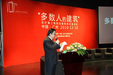 12月10日,京滬穗三地知名建筑師齊聚廣州大劇院,圍繞"我們生活的這個時代","建筑這點事","為人民服務--做一名好建筑師"三個主題展開熱烈討論,現場氣氛多次被推向高潮。《城市·環境·設計》雜志社主編、天津大學建筑學院特聘教授彭禮孝主持了論壇開幕式。天津大學建筑學院副院長孔宇航、場域設計主持建筑師梁井宇、廣州土人景觀顧問有限公司首席設計師龐偉分別擔任三場分論壇的學術主持人。 出席論壇的嘉賓包括中國建筑設計研究院副院長、總建筑師崔愷,天津華匯工程建筑設計有限公司總建筑師周愷,上海現代集團華東建筑設計研究院總建筑師汪孝安,同濟大學建筑設計研究院副院長曾群,深圳市建筑設計總院副院長、總建筑師孟建民,廣州瀚華建筑設計公司董事長、總建筑師冼劍雄,深圳市建筑設計總院副院長、總建筑師孟建民等京滬穗三地的30多位知名建筑師。 本次論壇活動由《城市·環境·設計》雜志社、廣州瀚華建筑設計有限公司聯合主辦。活動當天,正值瀚華成立十周年慶典,來自全國各地的建筑師、廣州當地建筑師、媒體記者、高校師生等600多人積極地參與了本次活動,使得廣州歌劇院的小劇場座無虛席。
