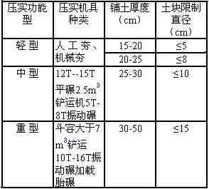 鋪土厚度和土塊直徑限制盡寸表