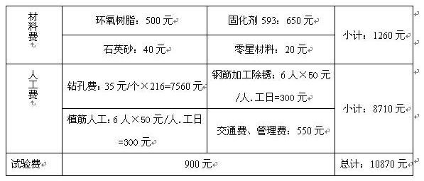 注:以上表格內費用并未包括植筋鋼材的價格。