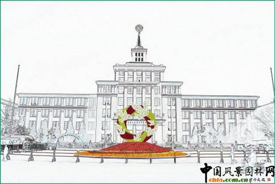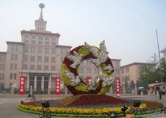 "和平之歌"花壇以和平鴿、花環造型象征我們祖國熱愛和平。
