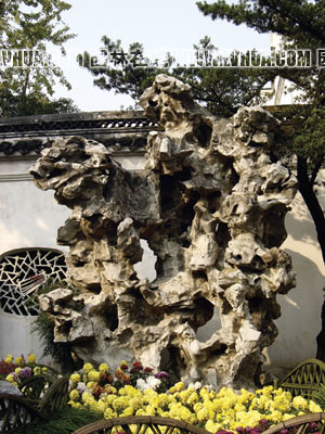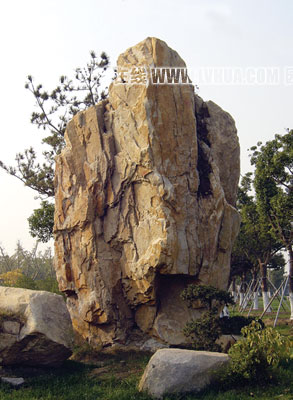 我們經常會在園林中看到由單塊山石豎向布置成獨立峰石的景觀,這就是我們常說的置石中特置山石的一種常見形式。單塊特置的峰石正如北魏酈道元在《水經注》中對承德避暑山莊東側“磬錘峰”所描寫的那樣:“挺在層巒之上,孤石云峰,臨崖危峻,可高百余仞!彼且宰匀唤缰泄轮艧o倚的山石作藍本(如大家所熟知的安徽黃山飛來峰),采用特置的形式,以“一峰則太華千尋”的濃縮洗練手法,顯現峰石獨特的個體美,它好比是單字書法或特寫鏡頭,突出其自身的完整性和自然美。 峰石的特置在我國的園林發展史上是運用得比較早的一種山體意匠表現形式,古代的園主們也常以奇峰異石而爭相夸耀,宋徽宗趙佶甚至還給峰石加封爵位,賜以“神運”、“昭功”、“敷慶”、“萬壽”等峰名,“獨‘神運峰’廣百圍,高六仞,錫爵‘盤固侯’!保ㄗ嫘恪度A陽宮記》)現在蘇州的瑞云峰、冠云峰就是這一時期(北宋花石綱)的遺物;峰石同時也是園主確證自我,張揚個性,展示其精神世界與審美情趣的集中體現,諸如米芾拜石、寒碧莊(留園前身)主人劉恕自號“一十二峰嘯客”等等。正是這種體量極大、姿態多變的峰石具有獨特的觀賞性,所以如果把它們和一般山石相混用,則無異于投瓊于甓,埋沒了它應有的價值。因此它常被特置于主要的觀賞位置,作為觀賞主景而加以應用,如蘇州留園的冠云峰、上海豫園的玉玲瓏等。