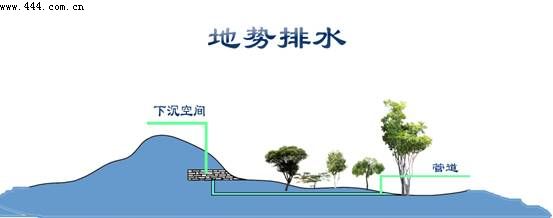 低洼地顯然不利于排水,所以下沉式空間應建在相對較高的地勢上。這樣一旦出現緊急情況,水流可以從高處迅速排出。