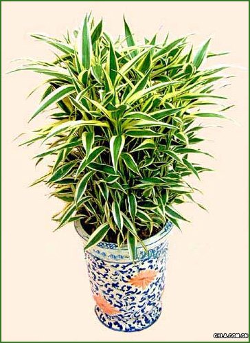 多年生常綠灌木,葉散成簇生長,葉片線形或披針形,頂端漸尖,全緣,葉長12厘米至22厘米,寬1.8厘米至3厘米,葉色碧綠而有光澤。葉緣有金黃色縱條紋。花序單生或分枝,小花白色。