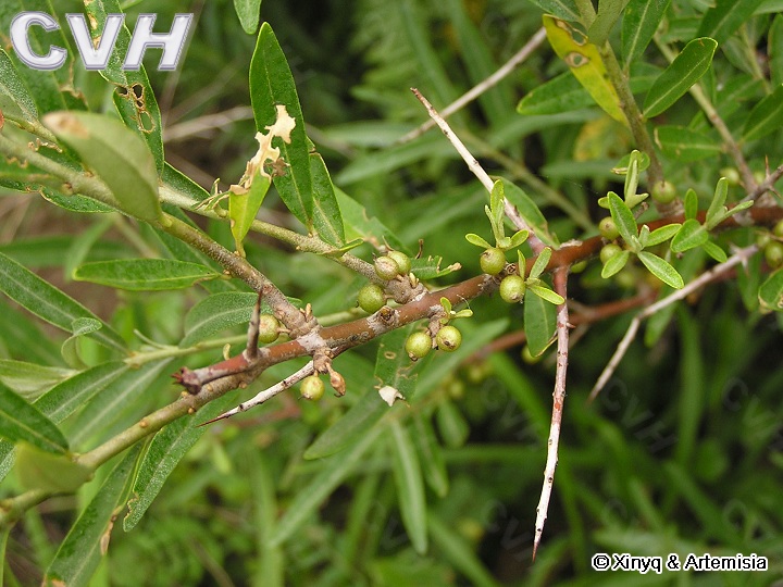 沙棘,又名醋柳、酸刺、黑刺,屬胡頹子科沙棘屬,是具有共生固氮能力的落。植株高達3米至10米,具粗壯棘刺,幼枝密被褐銹色鱗片。葉互生或近對生,長2厘米至6厘米,寬0.4厘米至1.2厘米,兩端鈍尖,背面密被談白色鱗片。花淡黃色,花小,雌雄異株,花期3月至4月。果實近于球形,橙黃色或紅色,果實成熟期9月至10月。