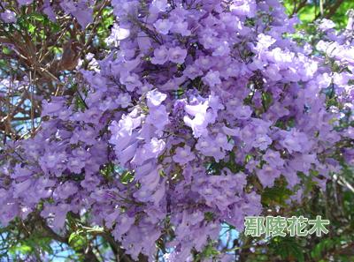 藍花楹,樹冠高大,株高可達15米以上,互生,二回羽狀復葉,小葉細小,羽狀,著生緊密,頗為秀麗。頂生或腋生的圓錐花序,花極繁多,深藍色或青紫色,布滿枝頭,極為壯觀。每序花長可達20厘米,有花數十朵,花鐘形。蒴果。