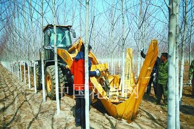 使用美國進口的大苗挖掘機進行起苗,可以保證土球緊實不松散、規格統一和根系的完整,以提高自由人槭移栽的成活率。