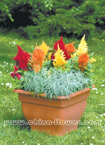 羽狀雞冠花為一年生莧科植物,原產于非洲和南美洲,屬全日照植物。常見花色有紅色、黃色、玫紅、粉紅、橙色、白色及復色等顏色。植株栽培高度在20至45厘米之間。羽狀雞冠花非常適合用作盆栽、花壇鑲邊,也適用于陽臺和庭院栽培。 一、穴盤苗栽培 采用穴盤播種,每穴一粒進行點播,也可將種子直接播種到花盆中。播種宜在1至6月進行。 育苗分為四個階段。第一階段:從胚根穿破種皮開始,幼根接觸到土壤,以長出子葉為結束。第二階段:從長出子葉開始,以長出真葉為結束。第三階段:從長出真葉開始,以80%的幼苗可以出售為結束。第四階段:到所有的幼苗都可以出售為止,這個階段持續7天左右。育苗過程中,需要將第一、二階段溫度保持在22℃至25℃。第三階段溫度保持在18℃至20℃。第四階段溫度保持在17℃至18℃。 基質中保持較低的可溶性鹽含量,pH值在5.5至6.0為宜。萌發時需要光照。播種后用蛭石輕輕覆蓋種子。保持土壤輕微濕潤但不能過于潮濕。 穴盤苗栽培需要4至5周時間,從第二個階段開始,在保證穴盤苗不會干燥的情況下開始降低濕潤程度。可溶性鹽的EC值不能超過0.75。可以給穴盤苗施加氮濃度為50ppm的肥料。在第三和第四階段,施肥濃度可增加到150ppm至200ppm。 二、移植后栽培 在萌芽的4至5周后,將每株幼苗分別移植到9至12厘米的容器中。 1.基質:使用排水良好的基質,要求粘土含量為15%至30%,每平方米基質中施加1.5至2.0千克的完全平衡肥料,含鐵螯合物和微量營養元素,pH值為5.5至6.0。 2.溫度:將溫度保持在18℃至20℃,在后期栽培過程中將溫度降低到16℃。避免溫度低于16℃,因為羽狀雞冠花在生長過程中需要溫暖的氣候條件。 3.光照:雞冠花為喜光植物,生長期要求陽光充足,光照充足還有利于防止植株徒長,特別是在苗期更應注意加強光照。 4.施肥:要求肥料濃度適中,每周給植株施加含150ppm至200ppm氮的肥料。避免銨濃度、氮濃度過高和鎂素缺乏,可施用1至2次硫酸鎂溶液(濃度為0.025%)。如果出現缺鐵癥狀,可施用1至2次螯合鐵。 5.栽培提示:植物生長早期,可以選擇稍微潮濕的環境,但在后期就要求稍微干燥的環境。避免低溫和營養缺乏,以防植株在未長成時就開始開花,這會影響羽狀雞冠花的品質。