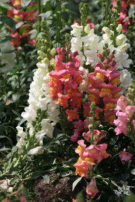 土壤 通氣且保水性良好的土壤最適宜于金魚草生長,如沙壤土。對于質(zhì)地黏重的土壤,移栽前要進(jìn)行改良,如加入泥炭蘚、稻殼、堆肥、腐熟廄肥等有機(jī)質(zhì)。若是栽于生長槽中,介質(zhì)中大田土壤的比例不能高于50%,其余的應(yīng)是下列成分的兩種或兩種以上:蛭石、珍珠巖、泥炭蘚、樹皮堆肥、稻殼等。無論使用土壤或無土基質(zhì)栽培,一般栽植前應(yīng)先消毒,以保證不含引起病害的有機(jī)體。消毒辦法通常是使用高溫蒸氣法(71℃高溫持續(xù)30分鐘),也可以用化學(xué)消毒法,如使用溴甲烷和三氯硝基甲烷。 肥料 金魚草通常被稱為耐貧瘠作物。當(dāng)然,沒有任何作物能在缺肥的環(huán)境下生長良好。金魚草在中到高肥力的土壤中生長良好,通常在栽植前加入磷和鈣,其他營養(yǎng)元素可在生長期間隨可溶性肥一起施入。除多孔隙的土質(zhì)外,每平方米施250克過磷酸肥可滿足植株整個(gè)生長期對磷肥的需求。如果土壤測定顯示缺鈣,可加入石灰石(在低pH值的情況下)或石膏(pH值中等),兩者均以每平方米250克為宜。如果用磷酸來調(diào)節(jié)水的堿性,則可不必施過磷酸鈣。若是EC值介于1.0至1.75之間,氨態(tài)氮的濃度應(yīng)低于10ppm,pH值介于5.5至6.5之間。澆透水后,再測量一次,看pH值是否在理想水平內(nèi)。 管理 穴盤苗一般在播種后四五周(即小苗可以容易地從穴盤取出和第二片真葉開始展開時(shí))便可栽植。栽植密度隨季節(jié)而變,從高光季節(jié)的每平方米100至120株到低光季節(jié)的每平方米85至90株。買回種苗后應(yīng)先放在溫室24小時(shí),進(jìn)行練苗后再移栽。如果實(shí)在無法按時(shí)移栽,應(yīng)將種苗放置到2℃至4℃的冷庫中,并用熒光燈照明,一般光照強(qiáng)度為2700勒克斯,每天光照14小時(shí)。在放人冷庫之前應(yīng)預(yù)先用殺菌劑進(jìn)行消毒,以防止灰霉病發(fā)生。 移栽后先用清水澆灌一次,然后在灌溉水中加入含較低氮的氨態(tài)氮肥,濃度為150至200ppm。在花苞開始長大前可定期施肥,并隔一定天數(shù)后用清水淋洗。一旦花苞開始現(xiàn)出顏色,就只用清水灌溉。 如果分枝過多,表明濕度或肥力過高。保持中低水平的EC值,應(yīng)小于2.5,可用清水灌溉來降低土壤EC值。一般輕而多孔隙的土質(zhì)不易引起水肥過高。如果過多的分枝產(chǎn)生于邊行,最好修剪去,以增加苗床中部的光照和空氣流通。 金魚草生長時(shí)至少要用兩層、最好是3層的支撐網(wǎng),網(wǎng)眼以10厘米×10厘米到15厘米×15厘米最為普遍。第一層網(wǎng)一般離地面10厘米至15厘米,第二層與第一層間隔15厘米左右,再上層的網(wǎng)以花莖的高度為準(zhǔn)。