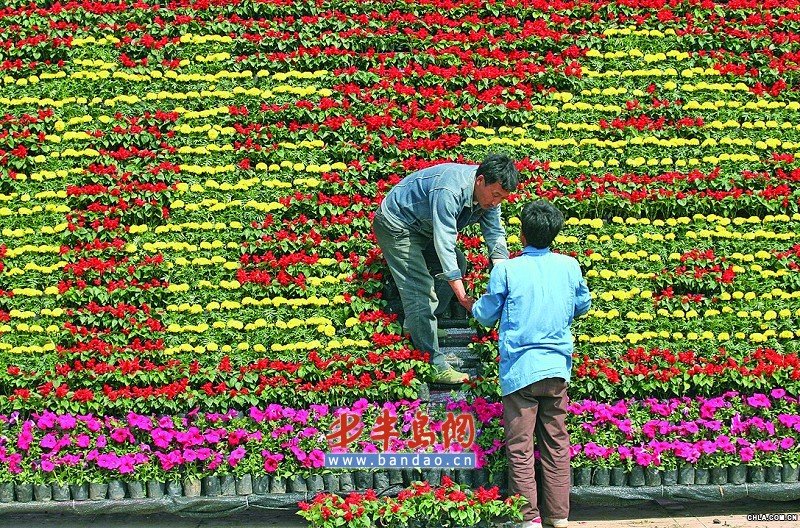 4月28日下午,在嶗山區枯桃花卉交易中心門前廣場,工作人員正在搭建一個巨型的大花壇,迎接將于4月30日開幕的第四屆山東省插花花藝大賽和第五屆枯桃花會。據悉,五一節期間唱主角的花會將以“奧運激情”為主題,除了有大型花卉、奇石展外,還邀請了韓國插花花藝師進行現場制作和講座,展示外國流行的花卉技藝。