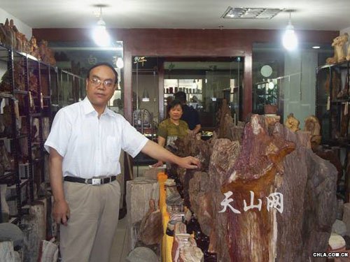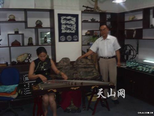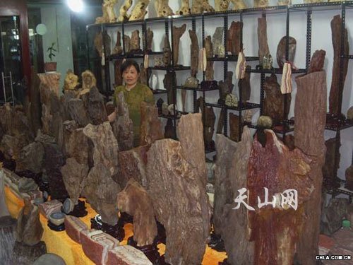 新疆民街金玉石緣總經理夏秋霞從上萬件各種觀賞石中選出10幾件精品觀賞石到首屆全國觀賞石、寶玉石博覽會上共同傳承石文化,以石交友、以琴會友。
