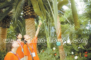 暑期來(lái)臨,北京世界花卉大觀園日前迎來(lái)了一批特殊的客人———來(lái)自甘肅地震災(zāi)區(qū)的7個(gè)班共200多名中學(xué)生。同學(xué)們?cè)诨ǖ暮Q蠛蜕衿娴闹参锿鯂?guó)里感到非常興奮。  黃秀慧攝