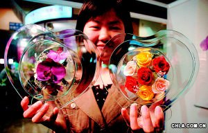 4月9日,中國國際花卉園藝展在北京展覽館開幕。展會上展示了國內外園林綠化行業的最新技術和材料。記者在展會上看到:一種無水鮮花工藝品,通過特殊加工,使鮮花的花朵失去水分,卻不變形、不掉色,花期長久、造型典雅,是時尚、高雅的饋贈禮品。