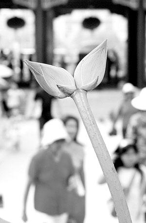 不少游客看到這株荷花含苞待放的狀態(tài),都不禁會期待和想象它綻放的美麗。