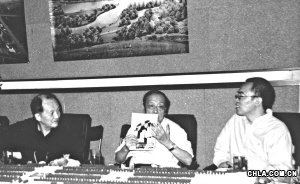 國家夏、商、周斷代工程首席科學家、專家組組長,中國先秦史學會理事長李學勤教授(中)參加了2006年奧運公園景觀設計的研討交流會并對規劃方案中有關歷史人文內涵方面提出了自己獨特的建議,(左)為北京大學歷史系吳榮曾教授,(右)為胡潔。