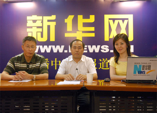 7月4日,北京市園林綠化局副局長強健和城鎮綠化處處長周劍平做客新華網“奧運系列訪談”。新華網 王翰林攝