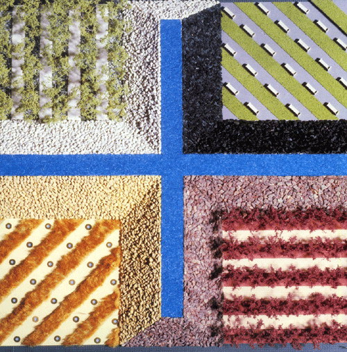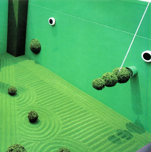 在這個屋頂庭園局促的空間中,園林和植物的生物屬性被抹去,變成一個假象,而白沙被涂上綠色——綠色的沙子不能凈化環境,白色的同樣不能。作為一個景觀工作者,瑪莎·舒爾茲對自己職業意義的困惑和對人類處境的焦慮幾乎是以一種絕望的姿態出現,人們仿佛無處可逃,植物也無法拯救我們,因為他們是虛偽的,和沙子一樣虛偽。