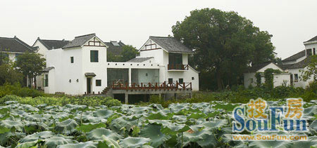 這些都是我自己設計的藝術(shù)家會館,跟民居風格很統(tǒng)一,但它在河塘上,很漂亮。