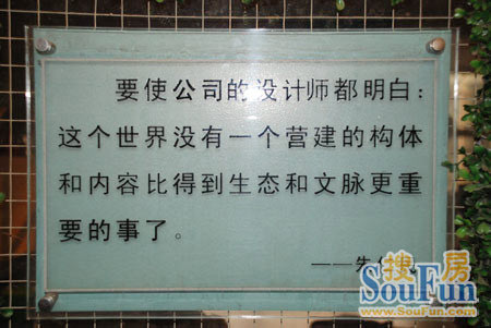 這個我寫在門口,“設計師必須具備哲學家的深邃,具備藝術(shù)家的敏感、工程師的準確、實業(yè)家的強干以及戰(zhàn)士般的執(zhí)著與忠誠”,如果你能做到這個,你就是一個正兒八經(jīng)的設計師,你就能設計出很好的東西。要使公司的設計師都明白,這個世界沒有一個營建的構(gòu)體和內(nèi)容比得到生態(tài)和文脈更重要。