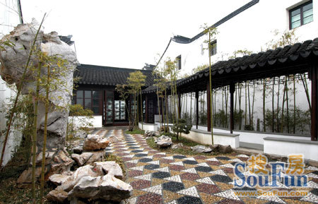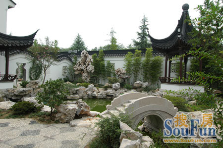 史建華對蘇州古典園林藝術(shù)有他自己獨特的想法,他將之歸結(jié)為“三內(nèi)”,即“內(nèi)斂、內(nèi)秀、內(nèi)涵”。即使對古典園林一竅不通的人,聽了這六字的含義,也會對古典園林有一個縱深的了解。“姑蘇人家”設(shè)計中嚴(yán)格要求建筑形式與江南水鄉(xiāng)古樸民居基本協(xié)調(diào),體現(xiàn)典雅風(fēng)貌和民俗風(fēng)情,在室內(nèi)布局中又滿足了現(xiàn)代人對居住舒適的要求。該園林別墅中具有大小景觀庭園及配園多處,花卉樹木層次有序,給人以高尚感覺。別墅內(nèi)配以亭、臺、樓、閣、走廊、水榭、園路小徑、荷花水池、石板小橋、景觀平臺等各種古典園林中的建筑個性和文化元素。同時又配有車庫、電梯、衛(wèi)生間、廚房、地下影院、管道煤氣、中央空調(diào)、智能防衛(wèi)系統(tǒng)等現(xiàn)代化生活設(shè)施。