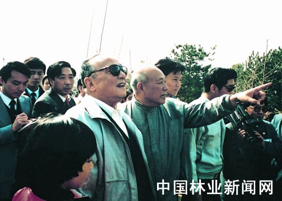 1983年春,單老與楊尚昆同志在順義潮白河全民義務(wù)植樹現(xiàn)場(chǎng)。