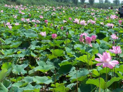 ![]() ![]() 素有"遍地野鴨和菱藕"、"荷花滿湖十里香"的江蘇省泗洪縣洪澤湖濕地自然保護區內,近2個月以來,1008種荷花競相綻放,盡顯風韻,吸引著數萬省內外游客慕名前來觀賞。 荷花,又名蓮花、芙蓉花,源于我國,種植歷史逾3000年,為我國民眾最喜愛的十大名花之一。荷花素有吉祥、清廉之喻,蓮花寶座被佛教尊為神圣的基礎,宇宙的象征,力量的源泉。自古以來,荷花就是宮延御園、書香門第庭院中珍貴的水生花卉。歷代文人騷客們對荷花一向不吝溢美之辭,從詩詞、繪畫到雕塑,從銅錢、銀元到人民幣圖案,荷花歷數千年而盛放。明人劉伯溫一曲“芍藥爭春炫彩霞,芙蓉秋盡卻榮華。有色有香兼有實,百花都不似蓮花”千古傳唱。 荷蓮渾身,其根、莖、葉、花、果皆具有經濟價值;藕節、蓮根、蓮芯、花瓣、雄蕊、蓮葉均可入藥。 清明前后,荷蓮始發,“小荷才露尖尖角"就已經把荷的那種健康向上的不屈精神展露出來。 5月,荷葉如傘,新荷似箭,婷婷玉立,清香襲人。 6-l0月,荷花盛開,大的如盤,小的似盅;紅賽彩霞,白比羊脂;“姿似如來佛寶座,色如天仙美人面”。 一天之中,荷蓮也會為我們帶來不同的感受:清晨看朝露于綠葉之上,恰似“綠羅傘上滾銀珠,碧玉盤中弄水晶”;驕陽之下,賞荷蓮“迎夏日而不懼,頂烈炎而無損”;從“接天蓮葉無窮碧,映日荷花別樣紅”中,您會感覺到一股自立、自強的熱流在胸中涌動,從而被荷花那種出淤泥而不染的高風亮節所感染;傍晚的荷塘,淑影田田,寧靜致遠,“荷旁不用關門睡,夜夜涼風香滿庭”。 洪澤湖濕地地處黃淮平原,曾幾何時還以“遍地野鴨和菱藕”、“荷花滿湖十里香”驕于世人,但無度的開發使昔日美景不再。泗洪縣委、縣政府立足長遠,實施恢復生態工程,既傳承了黃淮生態的繁榮,又展現了與時俱進的創意。自2004年以來,保護區廣集全國各地之荷蓮珍品建起荷花物種多樣性科技示范園。目前,園內共有1008個品種,其中,以“王蓮”為代表的粵系品種,以“艷陽”為代表的皖系品種,以“紅玉”為代表的冀系品種等均為國內、外珍稀荷種。 在保護區人工栽培荷蓮為發展生態經濟提供啟示,同時也為人們營造了一個休閑觀光的好去處,不啻為一個明智之舉。