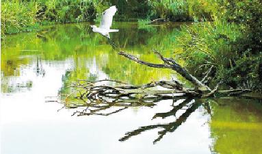 西溪炫品 吳璜攝影 攝影家吳璜陪著家人閑游西溪。小船無聲地徜徉在蓮花灘阡陌縱橫的河道上,沉醉在層巒疊翠、水天一色的西溪世界中的吳璜無意中發現,不遠處,一只白鷺正棲息在橫臥水邊、枯萎多年的柿子樹上。他趕忙請船夫移船相近,自己則不動聲色地將鏡頭悄悄聚焦在白鷺身上。“可就在按動快門的一剎那,白鷺振翅飛走了。”但也正是這樣的巧合,讓我們眼前的這幅“西溪炫品”動感十足。 在植被豐茂、河網交織的蓮花灘,水鳥是這里當之無愧的主人。據了解,經過生態保護,西溪的鳥類由原先的89種增加到126種。而且,“坐在游船上,時常可以看到白鷺從蘆葦叢中飛向天際。很多時候,即使我們的游船接近它們,它們也不會逃跑!皡氰珜ι徎┑娜伺c自然和諧共處的環境嘖嘖稱贊。 枯木,在其他公園里或許是一個“煞風景”的角色,但在西溪,像這樣“沉睡”在水中多年的枯樹卻成為人們眼中的一道風景、鳥兒棲息的樂園。有了它們,整個濕地公園也更多一分自然。