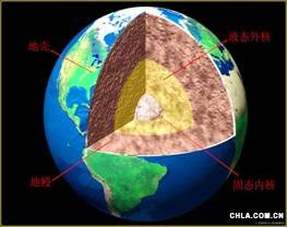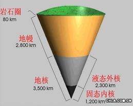 地球內部的圈層結構剖面圖