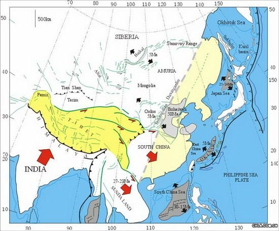 來自板塊邊界的作用力顯然是中國大陸新生代和現今構造變形的主要動力來源。