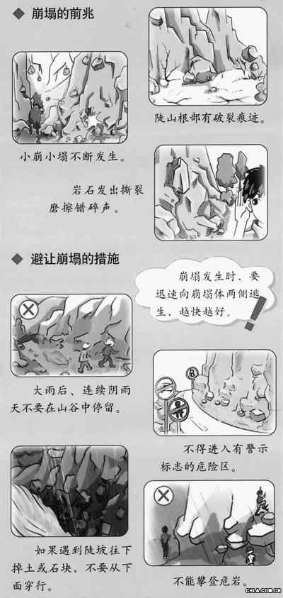 崩 塌:是指較陡的斜坡上的巖土體在重力的作用下突然脫離母體崩落、滾動(dòng)堆積在坡腳的地質(zhì)現(xiàn)象。