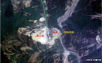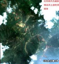 遙感圖片:震后綿竹市綿遠(yuǎn)河上游河道嚴(yán)重受阻