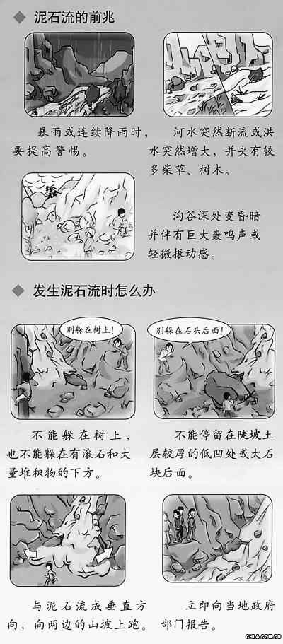 泥石流:是山區(qū)特有的一種自然現(xiàn)象。它是由于降水而形成的一種帶大量泥沙、石塊等固體物質(zhì)條件的特殊洪流。