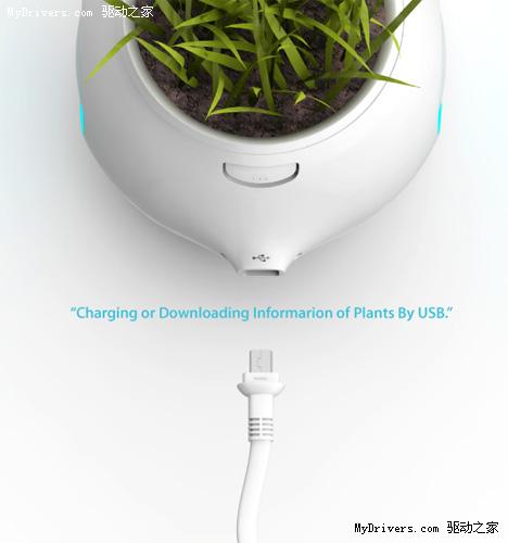 罐子的后邊還有一個迷你USB接口,插上數(shù)據(jù)線就可以充電或者配合電腦軟件下載培養(yǎng)植物的相關資料。