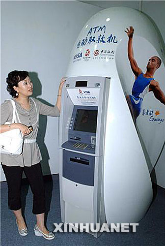 獨具中國特色的“青花瓷”ATM自動提款機近日在北京亮相。此款自動提款機以“中國青花藍(lán)” 為創(chuàng)意設(shè)計,突出北京奧運會“人文奧運”的內(nèi)涵,在奧運會期間將作為奧運場館內(nèi)專用ATM自動提款機,為國內(nèi)外觀眾、奧運會運動員及新聞工作人員等提供取款等各項服務(wù)。新華社記者 趙宇思 攝